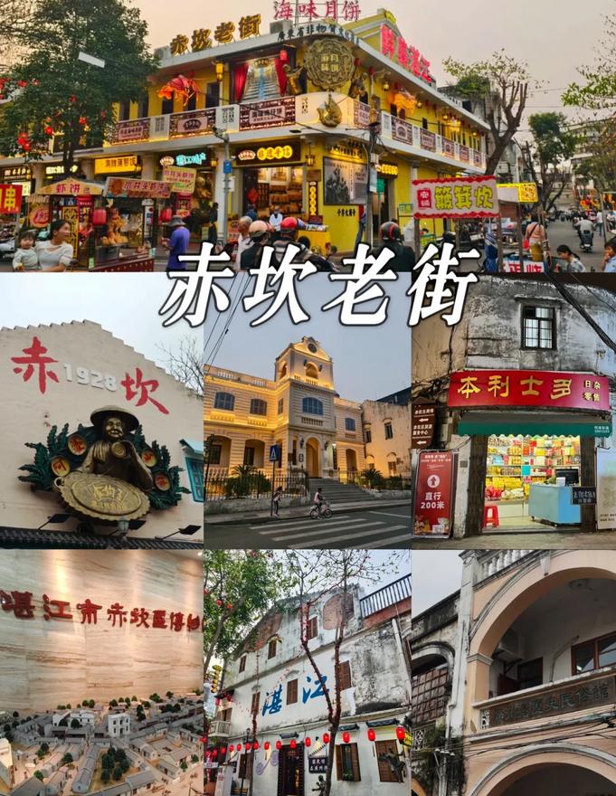 📍赤坎老街:这里是隐秘的拍照胜地🏘️充满浓厚的复古南洋风情,遍布骑楼小巷,水井油条和海鲜捞粉一定要尝试,超地道!