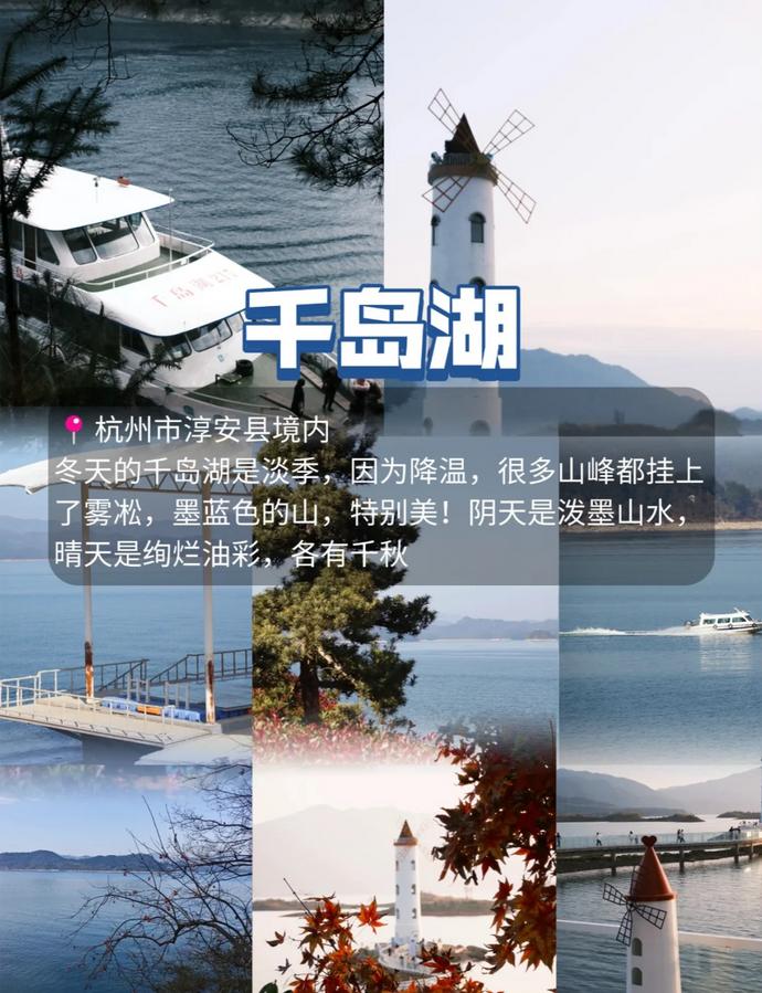 冬季的千岛湖进入淡季,由于气温下降,许多山峰被雾凇覆盖,呈现出墨蓝色的美景。在阴天,湖面如泼墨般迷人;而在晴天,则展现出绚丽的色彩,各具魅力。