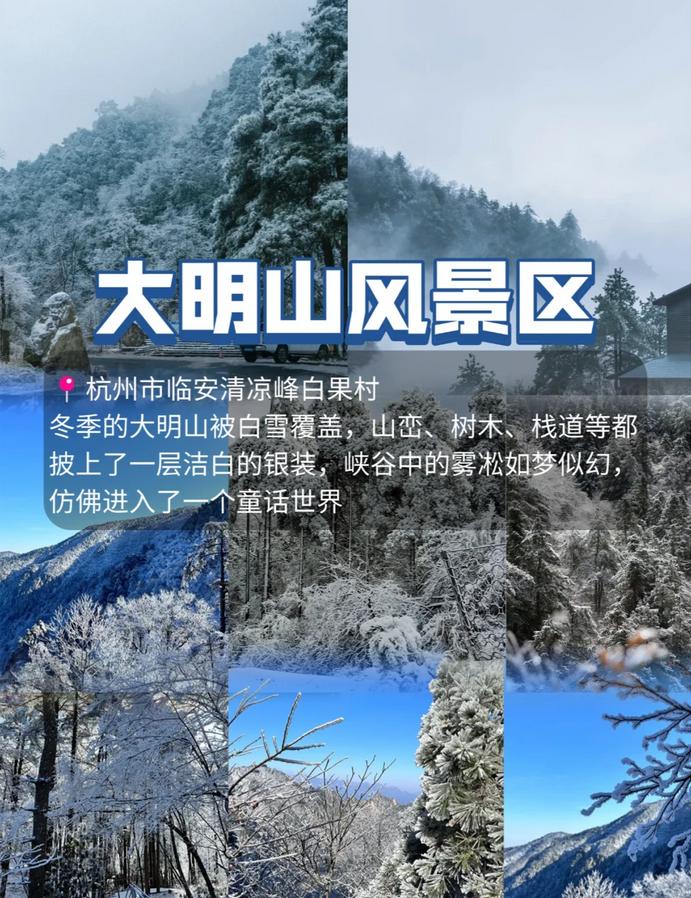 在冬季,大明山被厚厚的白雪覆盖,山脉、树木和栈道都披上了银白色的外衣,峡谷里的雾凇如梦似幻,仿佛置身于一个童话般的世界。