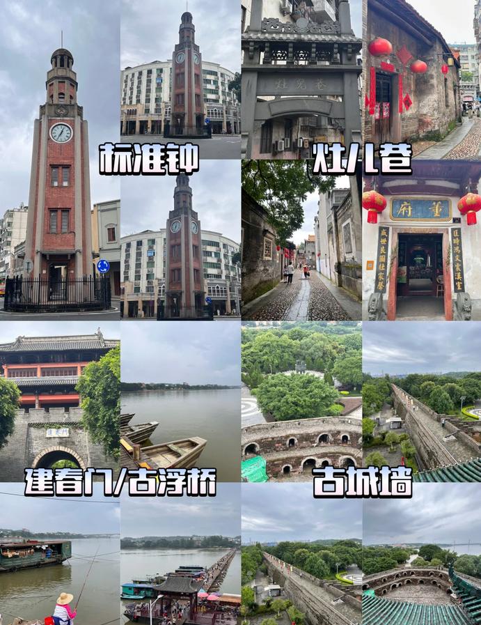 标准钟-灶儿巷-建春门-宋代古浮桥-古城墙-四贤坊/军门楼-郁孤台-宋潮不夜城
