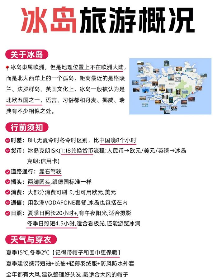⚠️提示:冰岛人少,资源有限,旺季时酒店、租车、旅行团和门票通常会提前😱被订满