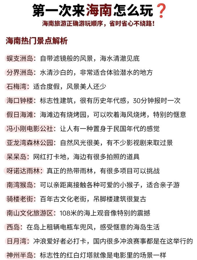 🔎如果这是你第一次来到海南,想要了解游玩方式的朋友们,可以收藏这份海南旅游攻略,涵盖每个景点的玩法,帮助你避开雷区,节省时间与精力‼️
