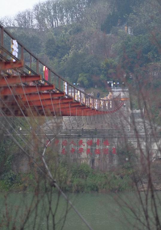 - 红军桥:红色吊桥与两岸的吊脚楼交相辉映