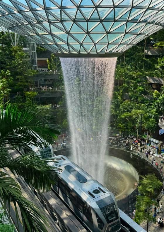 星耀樟宜:高达40米的雨漩涡瀑布以及穿梭于瀑布之间的轻轨(🚂小火车免费)