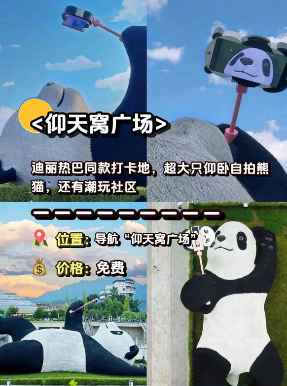 与迪丽热巴同样的热门打卡地,巨型仰卧熊猫供你自拍