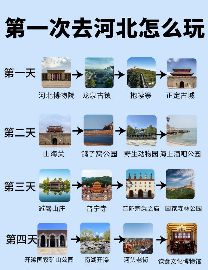 ✅ 对于河北博物院、避暑山庄等热门旅游景点,建议事先通过官方渠道进行预约,以免出现排队的情况~