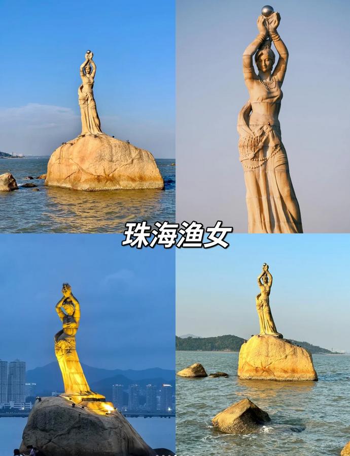 🌟特色:著名雕塑家潘鹤为珠海创作的渔女雕塑,作为城市的象征,静立于香炉湾边