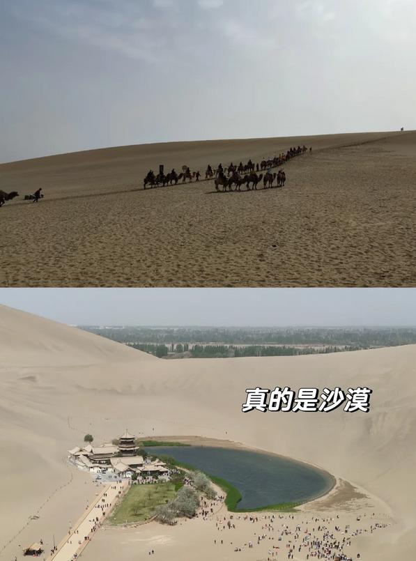 鸣沙山月牙泉:可以骑骆驼🐫前往月牙泉,途中会有驼队的工作人员停下来为你拍照,一次收费10元,当然也可以选择不拍。路上还有其他拍照点,照片在景区门口取时也需要付费。
