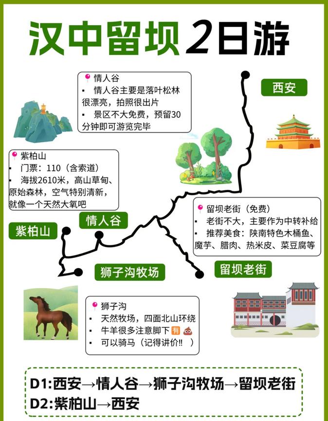 D1: 西安→情人谷→狮子沟牧场→留坝老街