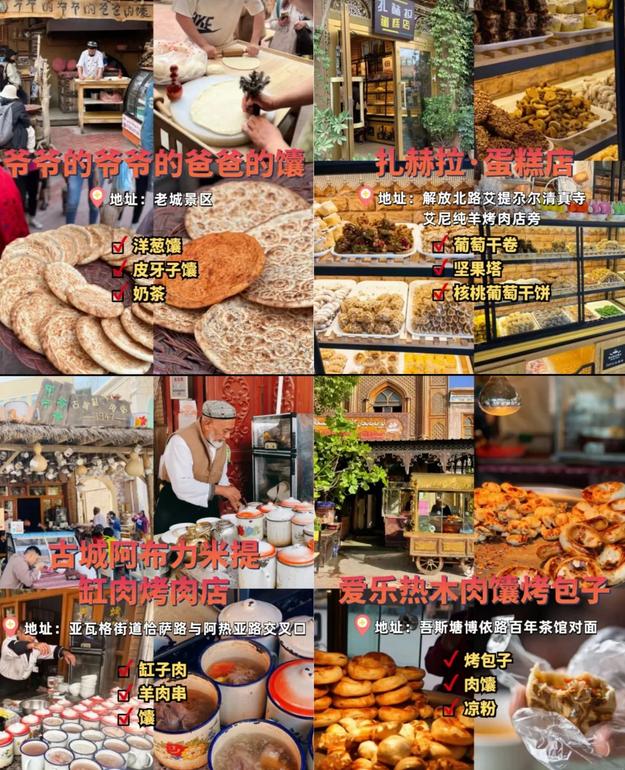 🔹美食推荐:古城内的烤馕、烤包子、手抓饭和冰淇淋等特色美食,边走边吃,绝对让人满意!