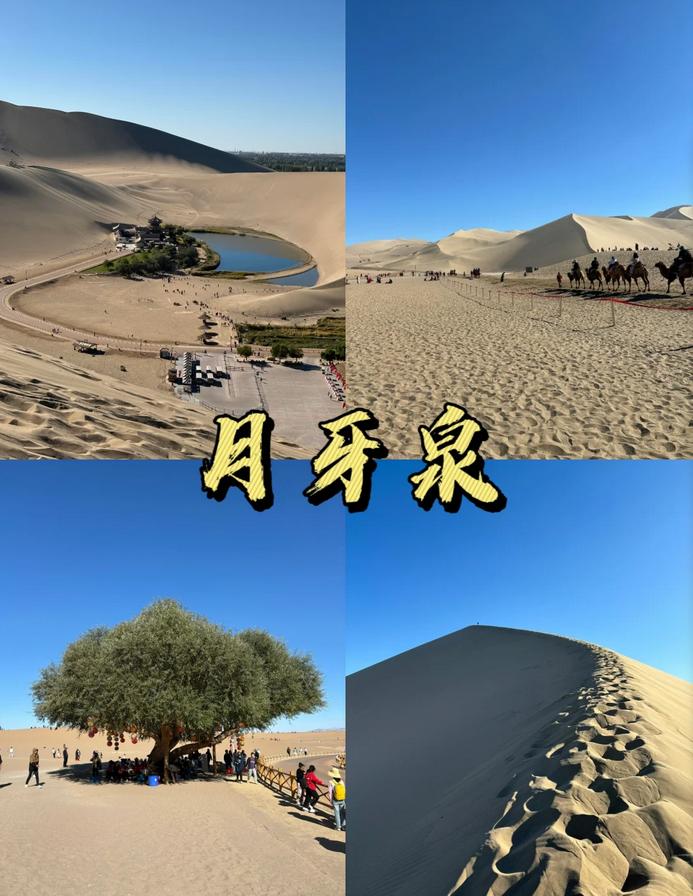 位于库姆塔格沙漠与巴丹吉林沙漠之间🏜️,因沙子移动时发出的声音而得名,月牙泉因其形状似新月而广为人知,是沙漠中的奇特景观💧。