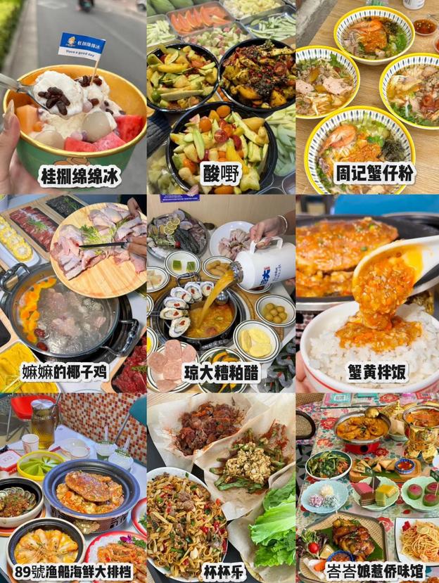 ✔️美食推荐:嫲嫲的椰子鸡、琼大糟粕醋、桂捌绵绵冰
