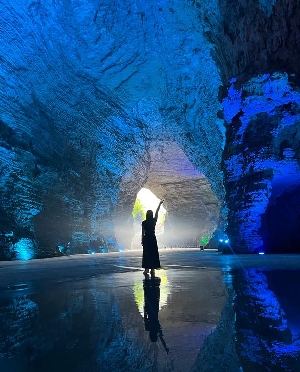 洞内气候凉爽,让人不愿意离开,山石、光影与流水交织,营造出绚丽而神秘的氛围,随便拍照都显得美丽动人。