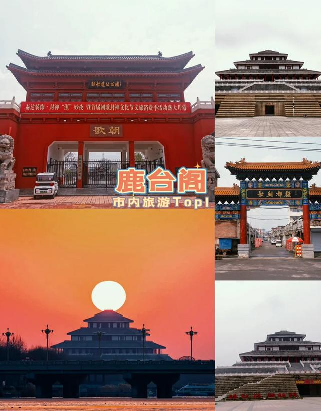 📝 景点介绍:鹿台阁是朝歌文化公园的重要地标,采用了商代四阿重檐的建筑风格