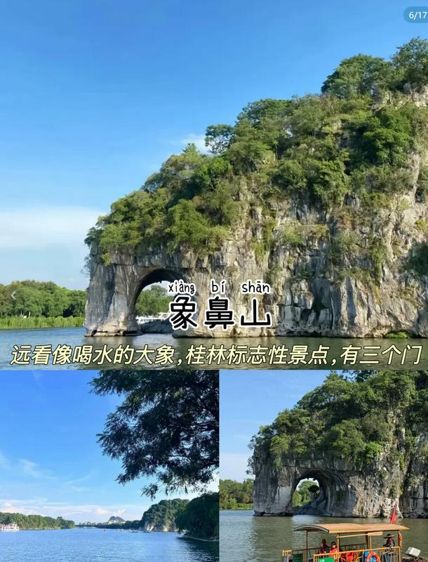 2️⃣象鼻山的竹筏是电动的,时间较短且声音较大,体验感不佳,建议在阳朔选择遇龙河漂流