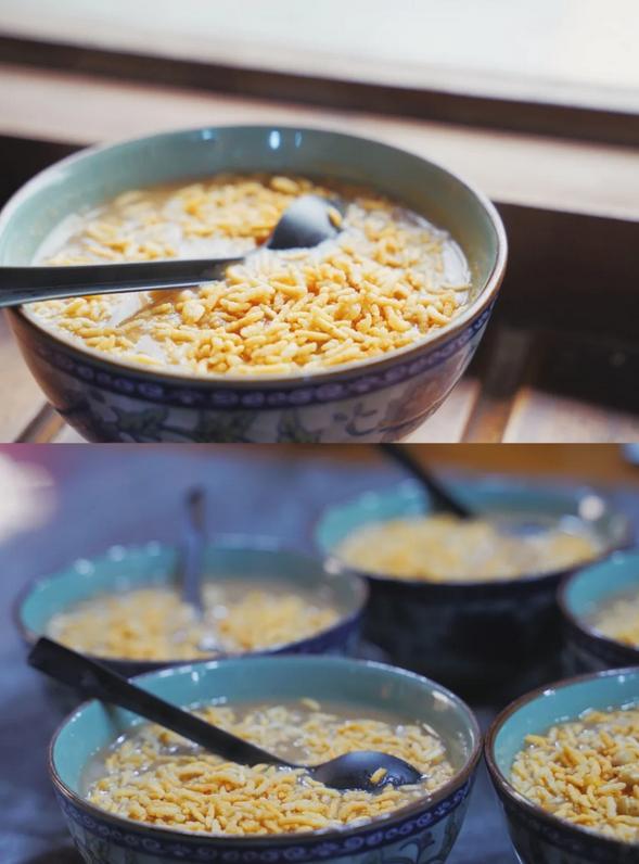 这里的擂茶是甜味的,上面撒有香脆的炒米,入口令人陶醉。