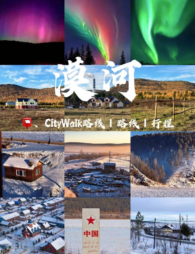 1. 南线游览:北方民族园👉鄂伦春族博物馆👉百草园👉北极天象馆👉观光塔👉最北哨所