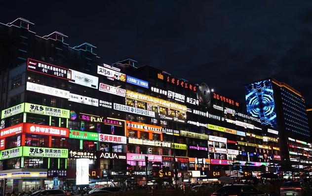 在研大门口,有一面非常受欢迎的弹幕墙,墙上基本都是双语标识,周围有各种餐饮和娱乐店铺;当夜幕降临,灯光亮起时,许多摄影师会占据最佳拍摄位置,如果不想花钱拍照,建议找个角落自己拍摄。