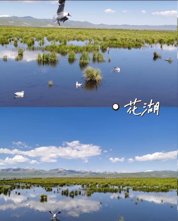 花湖:辽阔的湿地,蓝天、白云、飞鸟交相辉映,非常美丽。虽然之前看到一些攻略说花湖不值得一去,但我觉得完全没有失望。