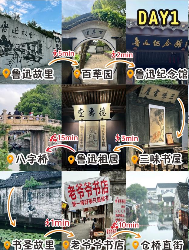 Day1️⃣:游览鲁迅故里➡️百草园➡️鲁迅纪念馆➡️三味书屋➡️鲁迅祖居➡️八字桥➡️书圣故里➡️仓桥直街