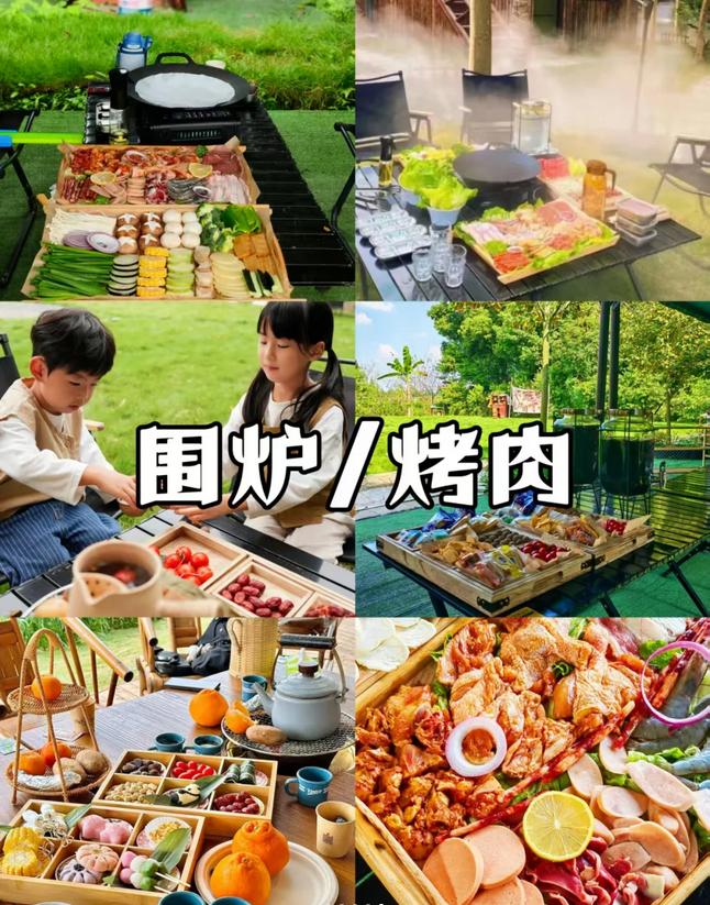 🍗户外烧烤:新鲜的食材,滋滋作响的肉串,为聚会增添浓厚的烟火气息,尽享自助烧烤的乐趣。