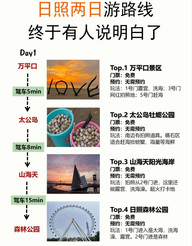 刚从日照回来,整理了一份攻略,供计划前往的朋友们参考。这是一个两天的游玩行程,真的玩得特别开心!尤其是7到9月期间,去日照的朋友们一定要保存这篇攻略哦!