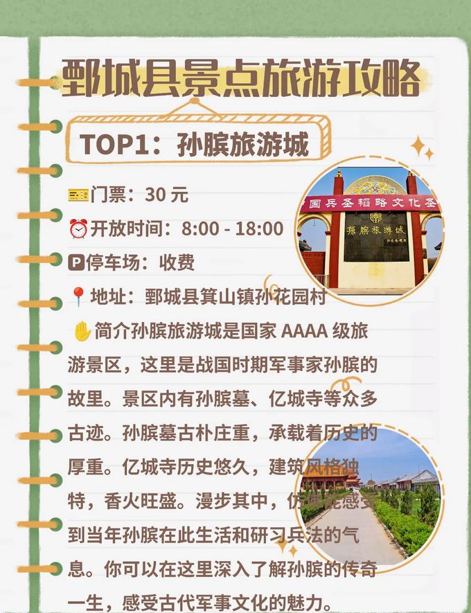 ✋️概述:这是一个4A级景区,内有孙膑墓和亿城寺等众多古迹,孙膑墓古朴而庄重,承载着厚重的历史