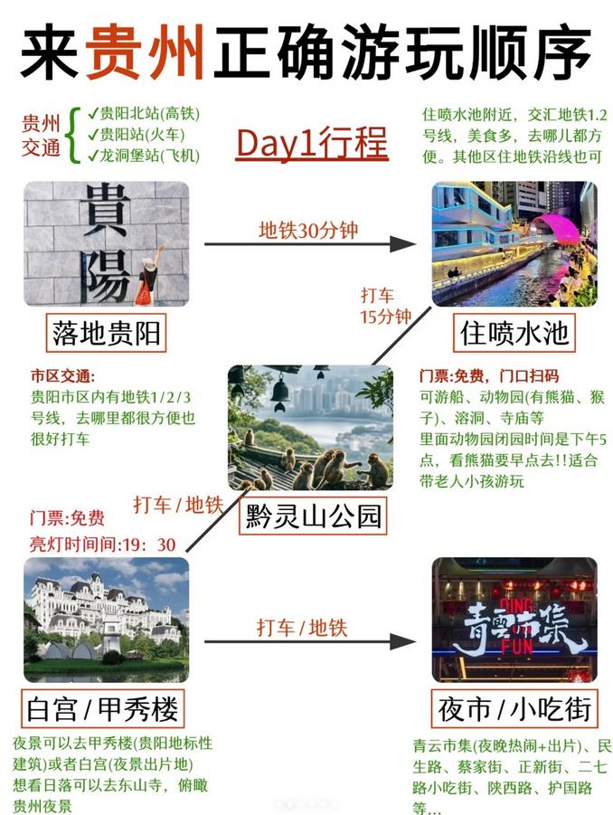 D1: 接机/站—民生路—黔灵山公园—白宫/甲秀楼