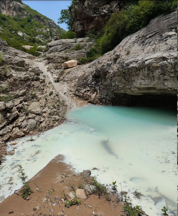 河谷起点 → 沿着溪水和河流踩水+翻越大石头 → 找到奶白色的泉水 → 尧头村➡️返回原路!