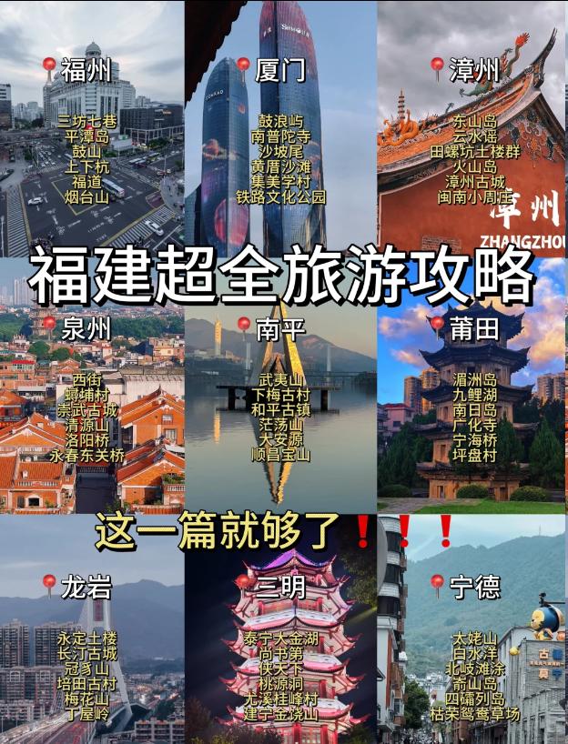 福建的魅力在于它独特的山海风光、古老建筑与人间烟火气,以下是9个城市的核心游玩攻略: