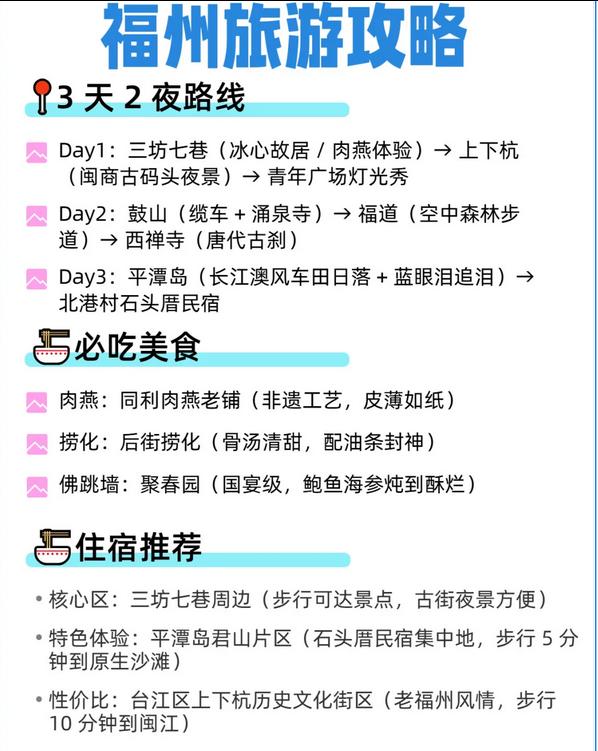 🔹 福州:在三坊七巷品尝肉燕,平潭追逐蓝眼泪|推荐同利肉燕|住宿建议在三坊七巷附近(逛古街方便)