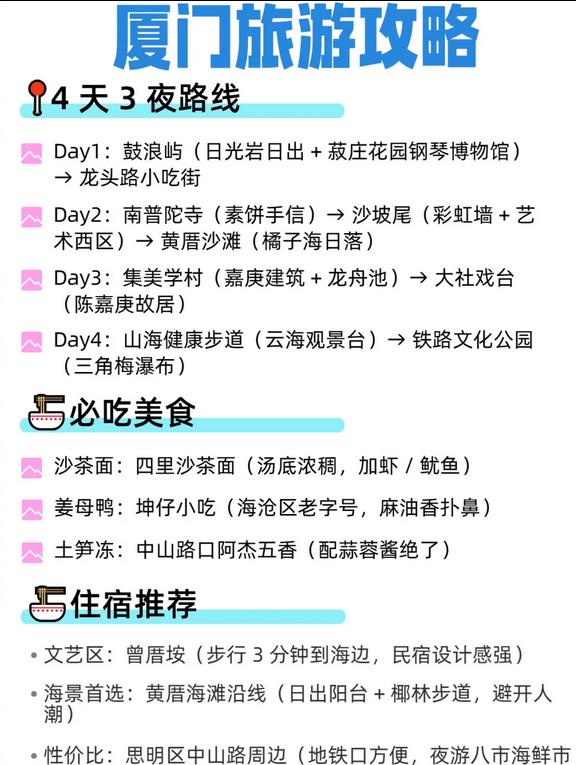 🔹 厦门:鼓浪屿观日出,沙坡尾拍摄彩虹墙|推荐四里沙茶面 |住宿可选曾厝垵(文艺民宿,步行可达海边)