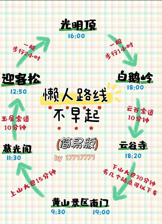 👣游览顺序:景区南门→玉屏索道→迎客松→光明顶→云谷索道→景区南门