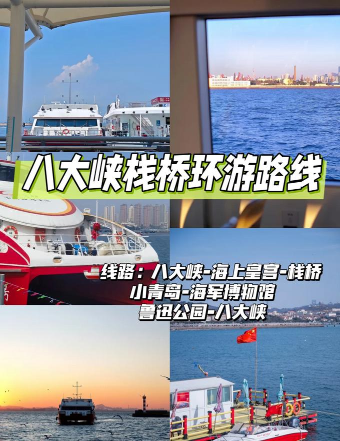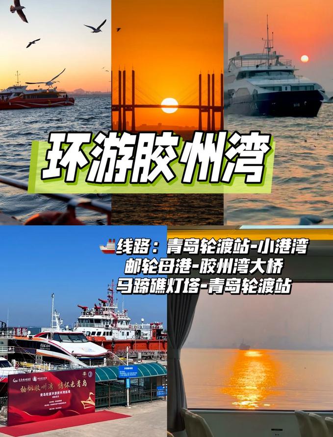 1️⃣ 青岛轮渡-环游胶州湾 ️环游路径:青岛轮渡站-小港湾-邮轮母港-胶州湾大桥-马蹄礁灯塔-青岛轮渡站;