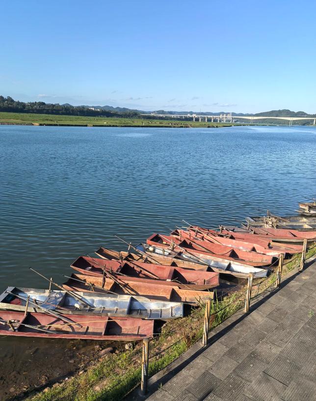 中午时分从重庆出发,直接导航至“百牛渡江”景区,停车便利且无需购买门票。我们大约五点到达,坐在亭子旁边欣赏太阳岛的美景,等到六点多时,太阳光线柔和,我们才乘船前往岛上,往返船票仅需10元,船程非常迅速!当天气晴朗时,岛上的风景十分迷人~