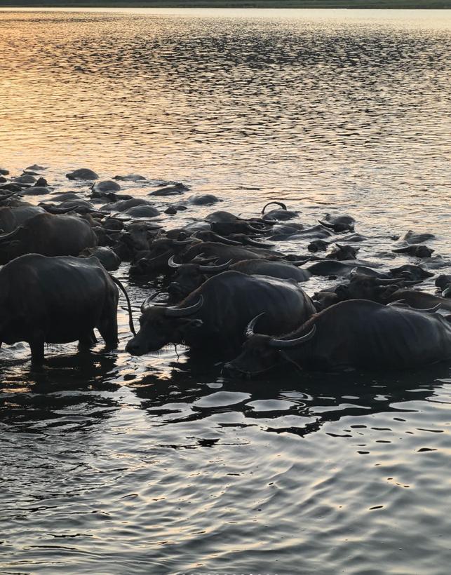 看着200多头牛一起渡江,场面极为壮观,母牛还会特别照顾小牛。我们可以在岛上观察它们下水,之后再乘船返回观看它们上岸的场景。