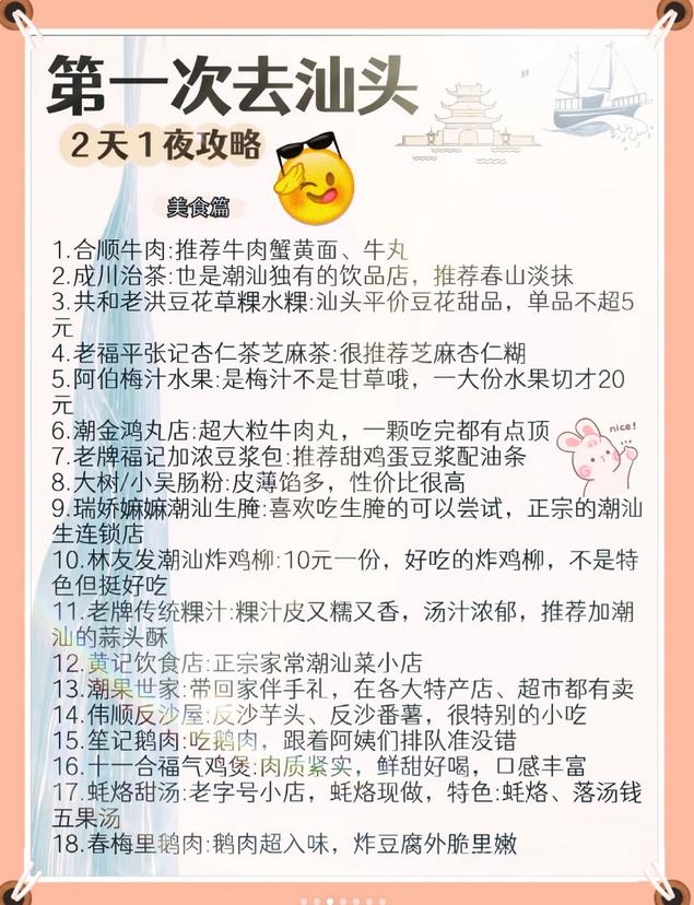 亲爱的朋友们!人生建议,务必去趟汕头!这座充满生活气息与历史魅力的海滨城市,2天1夜就能玩得非常充实~为大家整理了一份详尽的攻略👇