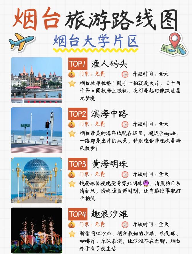 🌊烟台市的旅游资源主要分布在四个主要区域,依次为金沙滩区域、烟台山区域、烟台大学区域和养马岛区域,这里为您整理了一份关于烟台旅游的全面指南,涵盖了吃、住、行的相关信息!