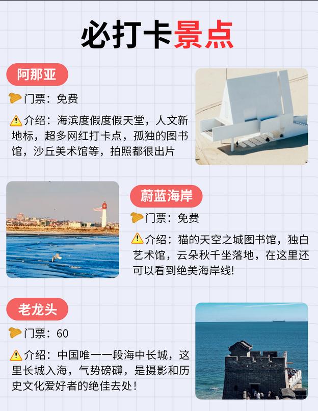 👉 告别千篇一律的旅游方式!在阿那亚的文艺气息、老龙头的历史厚重以及渔岛的奇幻体验中,5天让你感受三种不同的人生。
