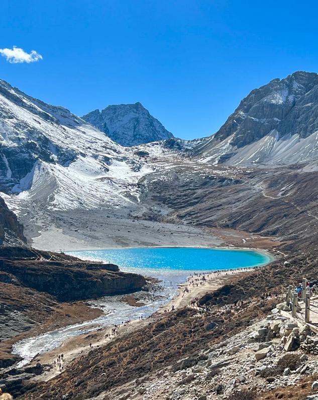 • 五色海:这是亚丁地区海拔最高的湖泊,位于4600米的高度。湖面在不同光线下展现出丰富的色彩,央迈勇和仙乃日雪山的倒影也清晰可见。