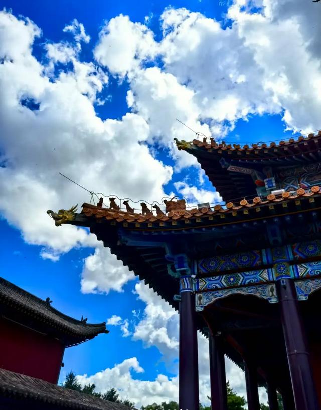 大召寺结合了藏、汉、蒙等多种民族的建筑风格。黄琉璃瓦在阳光下熠熠生辉,飞檐斗拱不仅精致而且大气,各种精美的木雕、砖雕和壁画,每个细节都展现出工匠的精湛技艺,随便拍一张都能出片📸