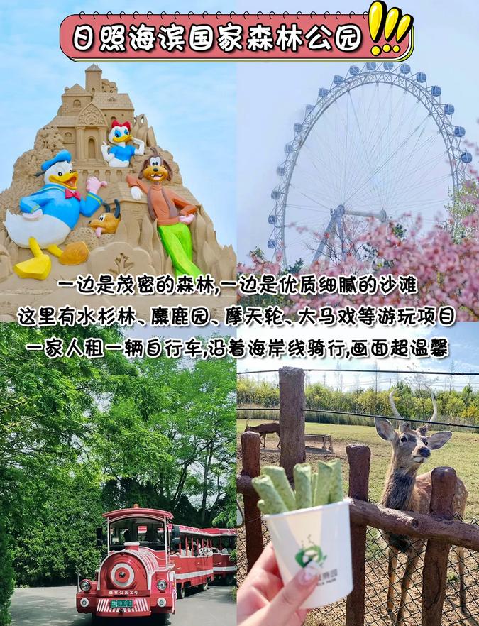 这里一侧是郁郁葱葱的森林,另一侧则是细腻的沙滩。景区内有水杉林🌲、麋鹿园🦌、摩天轮🎡和大马戏🤹🏻♀️等项目。全家可以租一辆自行车,沿着海岸线骑行,画面温馨无比👨👩👧👦。