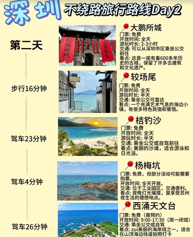 🏙热门景点:桔钓沙、世界之窗、杨梅坑、深圳天文台、锦绣中华