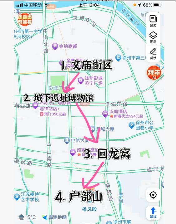 彭城壹号地下城遗址博物馆➡️文庙街➡️回龙窝➡️户部山
