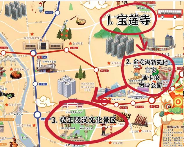 2⃣ 宝莲寺➡️金龙湖小镇(适合拍照,视时间决定是否前往)➡️楚王陵汉文化景区➡️户部山戏马台
