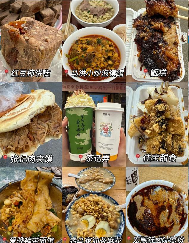 果然是碳水之都!肉夹馍尝过了!泡馍也吃了!甑糕也不错!油茶麻花也来一份!裤带面也不放过!卤汁凉粉也试了!肉丸酸辣汤也品尝了!红豆柿饼糕也不能少……各种各样的碳水让人应接不暇!真的是吃不过来!简直要晕倒在碳水的海洋里!
