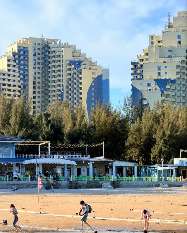 细腻的沙滩、层次分明的蓝色海水、绵延的海岸线,还有远处隐约可见的小岛,完全不像国内的海景,更像东南亚某个隐秘的海湾。