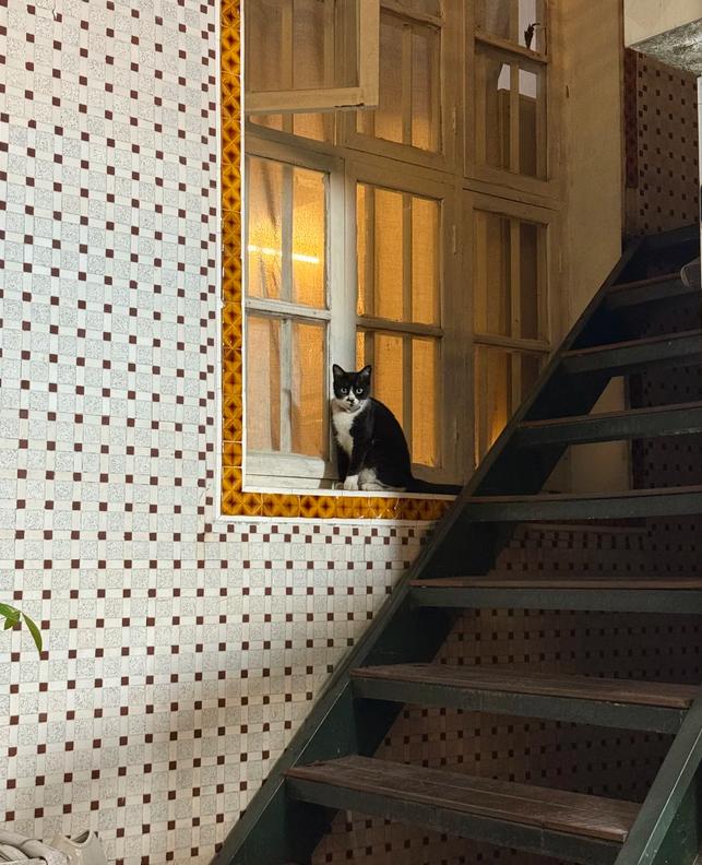 🌿 虽然山卡拉是青年旅舍,但小院子布置得十分舒适,有木质桌椅、绿植,还有几只猫和一只拉布拉多。这里的风格不是那种网红的精致,而是更贴近生活、真实自在的氛围。