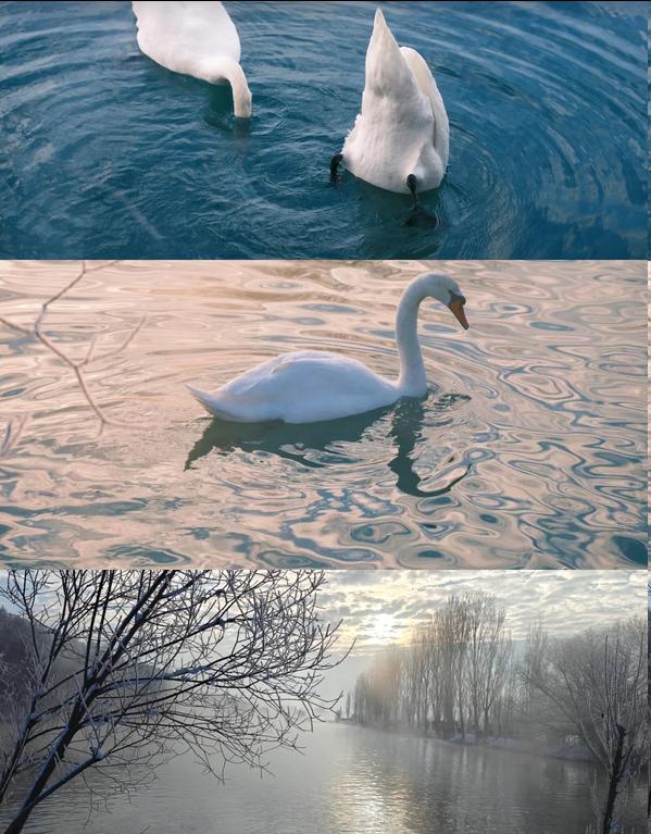 天鹅湖的日出美得令人窒息!在零下20°的天气下,湖面没有结冰,成群的天鹅如同仙境般游弋🦢。