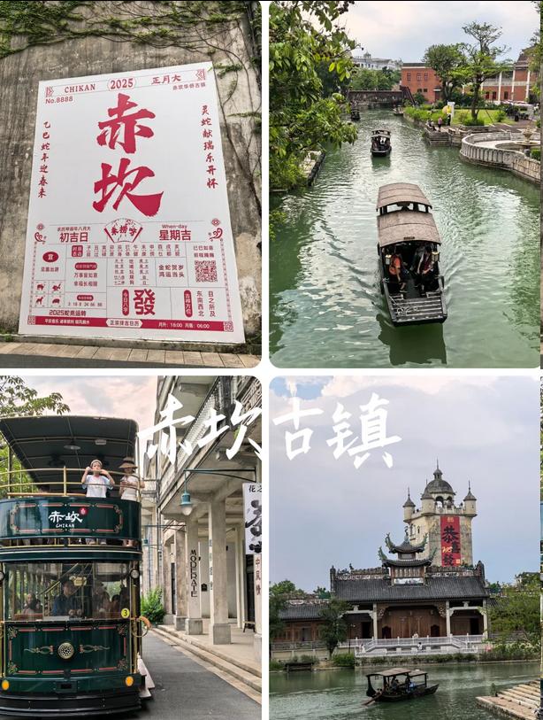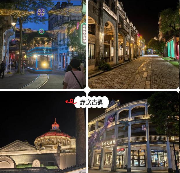 🎭特色活动:可以选择自费体验复古铛铛车和悠闲的摇橹船。晚上不容错过的是非遗打铁花表演以及大型滨水实景演出《归途》(演出时间可能因日而异,请关注公众号“赤坎华侨古镇”),带来震撼的视觉享受。